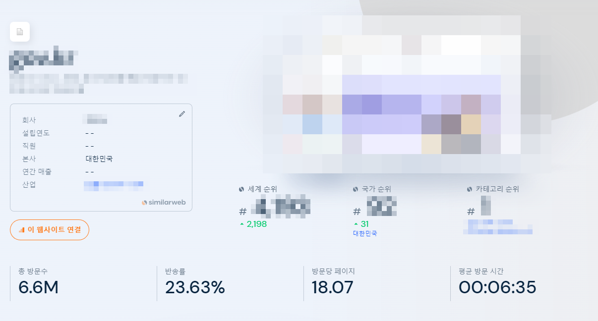 시밀러 웹(Similler)을 사용하여 웹사이트와 관련된 아래 리스트와 같은 여러 정보들을 알 수 있습니다.